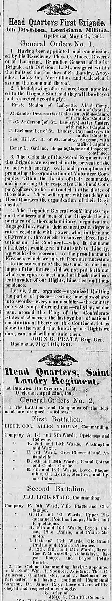 - ↑ "Public Sale - Estate of John G. Pratt - Lease of Plantation". The Opelousas Courier. 1866-11-24. p. 2. Retrieved 2023-07-26.