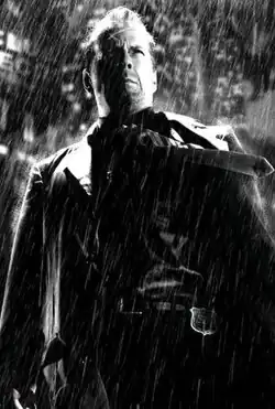 Hartigan is portrayed by Bruce Willis in the 2005 film adaptation of Sin City.[1] According to many interviews, Willis, upon seeing one or two minutes of The Customer is Always Right short that Robert Rodriguez had brought with him as a proof of concept tool to get actors and other talent (most notably Frank Miller) on board, paused the DVD, turned to Rodriguez and said that whatever he saw from that point onwards, he wanted to be part of the project. Michael Douglas was considered for the role before Willis came on board.