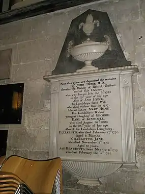 Memorial to Bishop Hume in Salisbury Cathedral