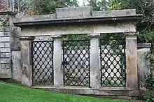 He died at Redhall House on 17 March 1807.[5] He is buried in a vault on the north side of Colinton Parish Church.