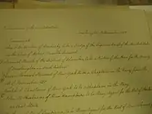 In 1829, Crittenden was elected to the Kentucky House via a special election.[27] He served as Speaker of the House for his entire term.[43] In 1830, he was the Whig nominee to replace John Rowan in the Senate.[44] Secretly, the party wished to nominate Henry Clay, giving him a springboard from which to launch another presidential campaign, but it was unknown whether he would be able to secure enough votes for confirmation; it was decided that Crittenden would be the nominee, and if the voting favored the Whigs by a large enough margin, Crittenden would withdraw and allow them to confirm Clay instead.[45] The Democrats countered successively with Richard Mentor Johnson, John Rowan, Charles A. Wickliffe, and John Breathitt.[44] None of them polled more than sixty-four of the sixty-nine votes needed for confirmation.[44] Crittenden garnered sixty-eight votes on fourteen different ballots, but he refused to vote for himself because he wanted Clay to be the nominee.[44] Some of Crittenden's supporters, however, refused to vote for Clay, and the seat was left vacant.[46]