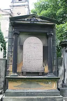 He is buried with his wife Margaret in St Cuthbert's churchyard in central Edinburgh. The grave lies against the north wall of the central section, south of the church.