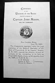 - ↑ Maronn, Marcus (1996). John Mason Statue Report. Mystic & Noank Library, Indian & Colonial Research Center, Windsor Historical Society, CT. State Library: The Mason Family Memorial Association.