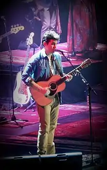In February 2015, Mayer performed alongside Ed Sheeran at the Grammy Awards.[125] As of March, Mayer said he was taking break from working on a "deeply personal new album".[126] Mayer also recounted that in 2011 he happened upon a song by the Grateful Dead while listening to Pandora, and that soon the band's music was all he would listen to.[4] In February 2015, while guest hosting The Late Late Show, Mayer invited Grateful Dead guitar player Bob Weir to join him in a studio performance. While Weir, Phil Lesh, Mickey Hart and Bill Kreutzmann (surviving members of the Grateful Dead) were preparing for their Fare Thee Well: Celebrating 50 Years of the Grateful Dead tour with Trey Anastasio, Mayer began practicing the band's catalog of songs. That August, Mayer, Weir, Kreutzmann, and Hart formed the group Dead & Company, along with Jeff Chimenti and Oteil Burbridge, and began a fall tour in the United States.[127] The tour was well received (Billboard called it "magical"),[5] and they continued to tour the US into 2016.[5] Although Lesh has declined to join Dead & Company, Mayer also performed with Phil Lesh and Friends at Terrapin Crossroads in 2015.[128]