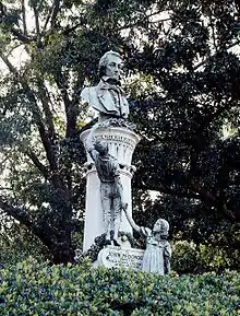 In 1938, as part of the Federal Art Project, a bust of McDonogh by Angela Gregory was erected at what was designated "McDonogh Place", a small park in Uptown New Orleans at St. Charles Avenue and Toledano Street.[25] In 1958, it was moved to Duncan Plaza by the new City Hall. On June 13, 2020, protestors toppled the bust of John McDonogh from its base in Duncan Plaza and tossed it into the Mississippi River.[10] On June 14 the bust was retrieved from the river,[26] and returned to city officials.[27]