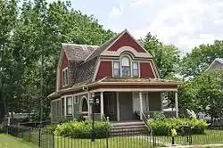 The John N. and Mary McQuilken House, also known as the Emelia J. Schleeser House and the Joan E. Schreiber House, is a historic building located in La Porte City, Iowa, United States. McQuilken was a meat and poultry merchant, and then an insurance salesman. He and his wife Mary had no children. Built from 1900 to 1901, the house's architect and builder are unknown.[2] It features Colonial Revival influences in its complex gambrel roof system and inset porch. Around 1960 the second floor was converted into an apartment. A renovation in the mid-1980s returned the house as much as possible to its original form. It was listed on the National Register of Historic Places in 1994.[1]