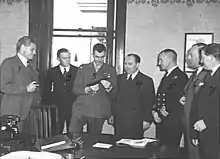 O'Brien (centre) at a meeting of the Executive Committee, Army Inventions Directorate in May 1945