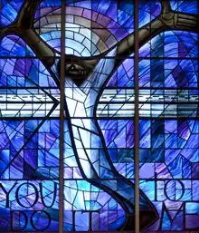 In 1963, Petts designed and created a stained glass window featuring a Black Jesus for the 16th Street Baptist Church in Birmingham, Alabama, following a racially motivated bombing that killed four African-American girls aged 11–14. Petts was said to be horrified "as a father and as a craftsman" upon hearing the news.[2] Working with the Western Mail to raise funds, Petts arranged donations from many thousands of Welsh people to pay for the window. The window was installed and dedicated in 1965.[5] In 1970, the designs for the window were donated to the National Library of Wales in Aberystwyth.[6] In 2013, to mark the fiftieth anniversary of the bombing, Petts's original designs were displayed at the National Library of Wales.[7] In September 2018, it was reported that the church was concerned that Alabama's stormy weather would destroy the window and appealed to the public to raise funds to preserve it.[8]
