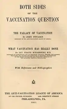 - ↑ Pitcairn, John (1907). Vaccination. Anti-Vaccination League of Pennsylvania.