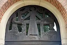 He was associated with the Cadbury family, particularly Sir Adrian Cadbury and with the Church of St Francis of Assisi in Bournville, where his tympanum, "The Canticle to the Sun", font, aumbrey, sanctuary lights, and Cadbury memorials can be seen.[3]