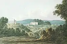 According to Lauder (2002) he was the sixth John to have been head of the family. He was the eldest son and heir of the fifth John Quicke (died 1729) by his wife Rebecca Nutcombe (died 1733), a daughter and heiress[7] of Richard Nutcombe of Nutcombe in the parish of Clayhanger,[8] Devon, who also owned the adjoining manor of Ashbrittle in Somerset, inherited by marriage from the Doble family.[9] His paternal grandmother (wife of Andrew Quicke (1666–1736) of Newton St Cyres) was Dorothy Northcote (died 1728), a daughter of Sir Arthur Northcote, 2nd Baronet of Hayne in the parish of Newton St Cyres, by his wife Elizabeth Godolphin, a daughter of Sir Francis Godolphin (1605–1667) and a sister of Sidney Godolphin, 1st Earl of Godolphin (1645–1712), First Lord of the Treasury. Elizabeth's nephew Francis Godolphin, 2nd Earl of Godolphin (1678–1766) married Henrietta Churchill, suo jure Duchess of Marlborough (1681–1733) the daughter of the great John Churchill, 1st Duke of Marlborough. This Northcote marriage gave the Quicke family a "strong connection" (Lauder, 2002) with the powerful Churchill family, until Henrietta's line died out.[10] His younger brother was Rev. Nutcombe Quicke (1727/8-1809), Chancellor of Exeter Cathedral,[7] who inherited his maternal estates and in 1792 assumed the surname Nutcombe (thus becoming Rev. Nutcombe Nutcombe[11]), having married a daughter of George Lavington, Bishop of Exeter.[6] The "fine memorial"[11] of Rev. Nutcombe Nutcombe survives in Clayhanger Church.