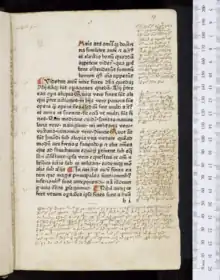 Beyond manuscripts, the Selden collection contains several notable printed works. Among them is the first book ever printed in Japan using moveable type, Sanctos no gosagueo no uchi nuqigaqi (Arch.b.f.69).[43] The printed books included in the Selden collection contain many that are significant in part because they originated in the libraries of other famous figures, including Sir Robert Cotton, John Donne, and John Dee.[43] According to Geoffrey Keynes, several of the books Selden received from John Donne's library include inscriptions from both men. One such book is Theodorus Beza's Tractatio de polygamia, which includes Donne's signature and motto ("Per Rachel ho servitor, & non per Lea"), as well as Selden's motto ("περί παντός τήν έλευθερίαν", "Freedom above all things").[49][50]