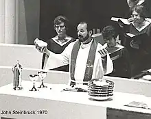 John Frederick Steinbruck (October 5, 1930 – March 1, 2015[1]) was an ordained Lutheran minister who served for 28 years (1970–1997) as the senior pastor of Luther Place Memorial Church in Washington, D.C.[2] Luther Place is an historic, red-stone church located at Thomas Circle, 1226 Vermont Avenue, N.W.,[3] in the heart of Washington's red-light district. Less than a mile from the White House, the church sits between the symbols of world power and some of the nation's worst urban blight.[4][5] As spiritual leader of Luther Place and what is now known as N Street Village, a diverse consortium of shelters and services for homeless women and their families,[6] Steinbruck became an articulate and passionate preacher of the Social Gospel and a leading voice locally and nationally for the homeless, Central American refugees, and the victims of persecution and prejudice.