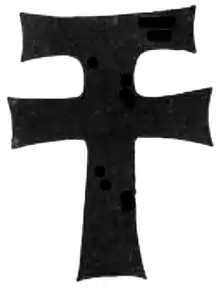 Merchant's mark of John Twynyho (d.1485), A Tau Cross combined with a Latin Cross, as indicated by the shape of the matrix of the missing monumental brass at the top of his ledger stone in Lechlade Church