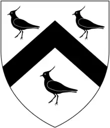 Arms of Twynyho: Argent, a chevron between three lapwings close sable.[1] As seen on the "Founder's Tomb" in Fairford Church, Gloucestershire, in which his daughter Alice Twynyho rests next to her husband John Tame (died 1500), builder of the church [2]