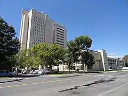 The John W. Lederle Graduate Research Center, also known as Lederle Tower or LGRT, is a building in Amherst, Massachusetts. It is part of the University of Massachusetts Amherst. It contains research laboratories, conference rooms, and offices for many departments within the College of Natural Sciences. There is also a substantial amount of classroom space, formerly teaching laboratories, and a large seminar room. The building is also connected to the Lederle Lowrise and other surrounding buildings.