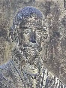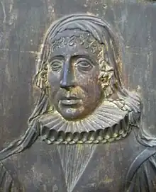 He died on 1 April 1645 and was buried in Watchet Church, Somerset, where exists a memorial to him and his wife consisting of a large slab of purbeck marble erected vertically against the east wall of the north aisle chapel, containing inlaid plaques of gilt-bronze relief-sculpted portraits and armorial shields.