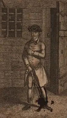Over the course of his imprisonment, British authorities were initially unsuccessful in gaining sufficient evidence. However, they soon co-opted a young man, John Baldwin, a former Philadelphia painter, who visited Aitken frequently in prison and eventually gained his trust.[6] Aitken soon provided a great deal of incriminating information to this agent, which was subsequently used in locating witnesses and strengthening the state's case against him.