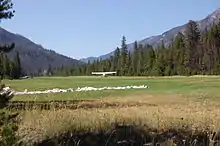 Johnson Creek Airport (FAA LID: 3U2) is a grass airstrip in Central Idaho three miles (4.8 km) south of Yellow Pine, a village in Valley County, Idaho, United States. It is managed by the Idaho Division of Aeronautics of the Idaho Transportation Department.[1] A caretaker resides at the field and the turf runway is well cared for. Johnson Creek is a backcountry airstrip and is popular with pilots who enjoy airplane camping.