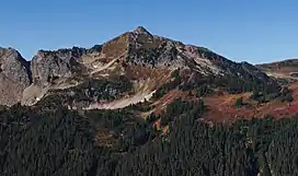 Johnson Mountain is a 6,721-foot (2,049-metre) mountain summit located in the Glacier Peak Wilderness of the North Cascades in Washington state.[2] The mountain is situated in eastern Snohomish County, in the Mt. Baker-Snoqualmie National Forest. Its nearest higher peak is White Mountain, 3.3 mi (5.3 km) to the northeast, along with Indian Head Peak 3.38 mi (5.44 km) to the east.[1] Precipitation runoff from the mountain drains into tributaries of the Sauk River. The mountain's name honors Mackinaw Johnson, a prospector who had a cabin in the vicinity.[3]