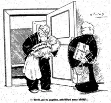 Caricature of Šliūpas and his lobbying efforts on civil registration published in December 1938