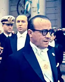 As a Frondizi loyalist, Guido was hesitant to assume the Presidency and agreed to do so primarily at the urging of UCRI party leaders, particularly Frondizi's Defense Minister Rodolfo Martínez, who conveyed the ex-President's desire for Guido to take office.[4][10] The UCRP also pledged its support.[11] On the evening of 29 March 1962, Guido was sworn in by the Supreme Court of Argentina and reportedly took his oath on a copy of the Constitution to symbolize the preservation of constitutional procedure[12] and asking that he not be considered a "traitor to his party or to the people."[4] The following day, Guido's swearing-in was reaffirmed in a public ceremony attended by Supreme Court justices and Congressional and military leaders.[11]