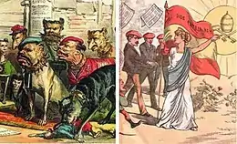Events of the Great War played into the hands of de Mella and his supporters, as the claimant Don Jaime was left non-contactable in his house arrest in Austria. Doña Marina attempted to execute the ultraconservative coalition strategy in Aragón.[123] As the conflict translated also into debate on international affairs, he used his skills to counter the aliadófilo propaganda, launched by supporters of Don Jaime. Falling short of pursuing a pro-German line[124] Doña Marina campaigned for neutrality,[125] especially as in 1917-1918 the odds were turning against the Central Powers and the Spanish government was tempted to declare war on Berlin. Though in 1918 he signed a venerating homage to Don Jaime,[126] at that time he already eschewed the claimant, in a private letter noting that he "no profesa nuestro Credo, ni cumple nuestros mandamientos, ni reza nuestras oraciones, ni recibe nuestros sacramentos".[127] When in early 1919 Don Jaime made it to Paris, the conflict with the Mellistas flared up; following brief showdown the claimant regained control of the party. De Mella and his supporters left; Doña Marina counted among their key names.[128]
