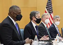 Joseph Young with Secretary of State Tony Blinken and General Lloyd Austin in Japan, March 2021
