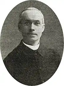 When the 1881 Jules Ferry laws led to the expulsion of the Jesuits in France,[2] Crimont continued his studies at Victoria College in St Helier, Jersey and Collège Saint-Servais in Liège, Belgium. At Liège he also served as a prefect and teacher of catechism (1882-83). Taking ill and given only weeks to live, he traveled to Lille and there met the Italian priest John Bosco, whose prayers Crimont claimed restored him to health.[3]