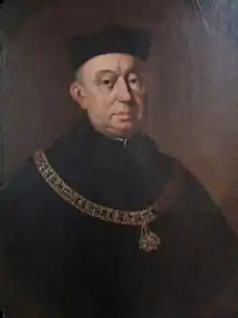 After his election, the new abbot immediately tried to make peace. Thus, at the beginning of May 1718, six years after the end of the Toggenburg War, negotiations in Baden began. The peace contract contained 84 points and was signed on 15 June 1718. The contract that was ratified by the abbot was brought to Zurich and Bern on 6 August 1718 in order to be ratified there as well. However, Clement XI discarded the contract, which led to riots.[1] Abbot von Rudolphi returned from exile to Rorschach on 7 September 1718. He began receiving homage in Toggenburg. On 11 October, he moved into Saint Gall and on 15 October, lections and the silentium as well as, a day later, the orthros could be reintroduced. Only on 23 March 1719 did the abbot receive a large part of the library that had been brought to Zurich at the beginning of the war. Other items belonging to the prey of the people of Bern, for instance eight bells and seven fire engines, arrived in Saint Gall on 5 May 1721.[2]
