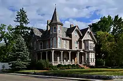 Joshua Wilton House, also known as the Shank House and Tau Kappa Epsilon House, is a historic home located at Harrisonburg, Virginia. It was built in 1888, and is a 2+12-story, central plan, brick eclectic Late Victorian dwelling. It has two projecting gabled pavilions and a three-story octagonal turret covered by a pointed roof. The house features elaborate wooden trim and brackets, and a fancy bargeboard decorates the eaves course of the gable roof.[3]