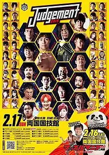 Judgement 2019: DDT 22nd Anniversary (Judgement2019〜DDT旗揚げ22周年記念大会〜, Judgement 2019: hataage 22 shūnen kinen taikai) was a professional wrestling event promoted by DDT Pro-Wrestling (DDT). It took place on February 17, 2019, in Tokyo, Japan, at the Ryōgoku Kokugikan.[1][2] It was the twenty-third event under the Judgement name. The event aired domestically on Fighting TV Samurai and globally on DDT's video-on-demand service DDT Universe.[3]