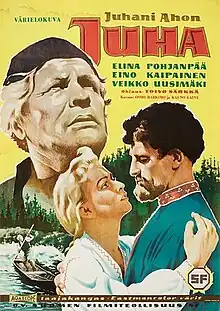 Juha (also known as Love Along a River)[1] is a 1956 Finnish drama film produced, written, and directed by Toivo Särkkä. The film is based on a 1911 novel Juha by Juhani Aho, telling the story of the farm host Juha and his young wife Marja, whose usual everyday life is disrupted when a Karelian traveling merchant arrives and starts seducing the passionate Marja. The film stars Elina Pohjanpää, Eino Kaipainen and Veikko Uusimäki.
