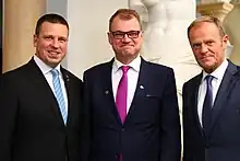 Juha Petri Sipilä (Finnish pronunciation: [ˈjuhɑ ˈpetri ˈsipilæ]; born 25 April 1961) is a Finnish politician who served as Prime Minister of Finland from 2015 to 2019. A relative newcomer to politics, he has a successful background in business.[2] He was the leader of the Centre Party from 2012 to 2019. After leading the Centre party to victory in the 2015 general election, Sipilä formed a centre-right coalition and was appointed Prime Minister by the Finnish Parliament on 29 May 2015.[3] On 8 March 2019, Sipilä stated his intention to resign as Prime Minister, citing difficulties in reforming Finland's health care system. President Sauli Niinistö asked him to continue with a caretaker government until a new government coalition was appointed on 6 June 2019 and was ultimately succeeded by Antti Rinne.[4]