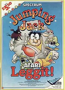 Jumping Jack is a platform game designed by Albert Ball,[1] with art by Stuart C. Ball, for the ZX Spectrum and published by Imagine Software in 1983. It was available for the Atari 8-bit family and Dragon 32 under the name Leggit!.[2] In these versions, Jack is renamed Leaping Lenny.