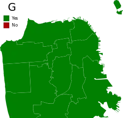 Proposition G would make it City policy to encourage timely development of Candlestick Point and Hunters Point Shipyard, including a new 49ers stadium or equivalent, that the City would transfer park land for such development if replaced by new public parks elsewhere, and that 1997 Propositions D and F be repealed. This was submitted to the ballot to counter Proposition F above.