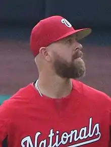 After the Angels released him, Miller lost weight, added a split-finger fastball to his fastball-slider repertoire, and improved his pitch velocity.[9] Impressed with the results,[9] the Washington Nationals signed him to a minor-league deal on January 12, 2018.[15] After he attended extended spring training in 2018,[9] the Nationals assigned him to the Syracuse Chiefs of the Class AAA International League,[6] where he began the 2018 season with nine appearances for the Chiefs, pitching 1323 scoreless innings with 23 strikeouts and three walks and earning a save in his only save opportunity.[6] On May 25, 2018, the Nationals selected his contract and called him up to the major leagues.[6][9] On July 29, 2019, Miller was designated for assignment.[16] He elected free agency on October 1, 2019.