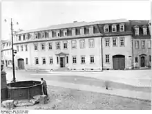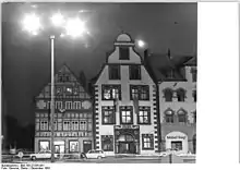 As a freelance architect in the Ulbricht era, Menzel-Jordan initially only found offers that did not challenge her creative skills and knowledge, she finally found a rich field of activity in cooperation with the church building authorities in Erfurt and later also the respective building departments in the city administration. Her most important projects in Erfurt include the St. Augustine's Monastery,[2] which had been destroyed by British mine bombs in the course of the air raids on Erfurt,[3] Krämerbrücke, Michaelisstraße, Domplatz, Predigerkirche, Michaeliskirche, and Molsdorf Castle.[4]