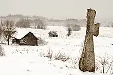 There is a limestone cross beside the road to memorialize a Russian boyar Vassili Rosladin, who was killed there in 1590.[1]