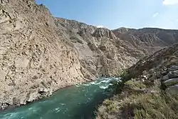 The Kökömeren (Kyrgyz: Көкөмерен) is a right tributary of the Naryn located in Chüy Region (Jayyl District) and Naryn Region (Jumgal District) of Kyrgyzstan. It is formed by the confluence of the rivers Suusamyr and Batysh Karakol (Western Karakol). It is 199 kilometres (124 mi) long, and has a drainage basin of 10,400 square kilometres (4,000 sq mi), with an average discharge of 80.3 cubic metres per second (2,840 cu ft/s).[1] It possesses significant hydro-power potential.[2] In June 2011, China and Kyrgyzstan signed a protocol of intent to begin construction of Kökömeren River chain of power plants in 2012.[3] Whitewater rafting and fishing are popular tourist activities on the Kökömeren.
