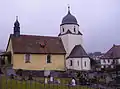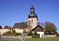 The church has its consecration on 25 July and 25 November. The original church patronage, to St. Kilian, likely goes back to the 8th century when the original parish of Königsfeld belonged to the Bishopric of Würzburg. The parish church lies in the middle of the fortified graveyard, whose western gate and part of whose wall go back to Romanesque times. In the time when Gothic was fashionable, an apse was built onto the tower in the east. The expansion only came into being after the Thirty Years' War. In 1710, the tower was integrated into the main building. The tower has a bulbous cupola.