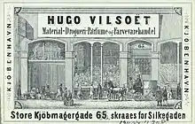 The ground floor of the building was adapted for use as a proper retail space with large display windows in 1952.[1] Carl Bagger's perfumery was at some point replaced by Hugo Vilsoët Material- Drogueri- Parfume- og Farvehandel, a combined pharmacy, perfumery and dye shop.
