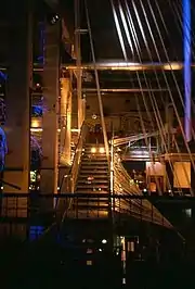 The club was renowned for featuring international stars of the techno, house and pop scene. The New Yorker David Morales was the premiere guest at the regular Saturday event called World League, which was held for the first time on 31 October 1996.[6] Alongside Morales, international star DJs and live acts such as Sven Väth, Carl Cox, Paul van Dyk, Armand van Helden, Daft Punk, Masters at Work, Talla 2XLC, Marc Spoon, DJ Sneak, Frankie Knuckles, Bob Sinclar or Westbam performed regularly and often exclusively at the KW, when they were in Munich. Likewise, international pop stars such as Boy George or Jimmy Somerville of Bronski Beat chose the KW for their concerts.[4][7] Such events then frequently attracted thousands of visitors, many of them arriving from afar, to the Kunstpark Ost,[8] and soon the KW had built up a reputation all over Europe.[9]