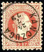 Austrian cancelled KK stamp, Kańczuga in 1879