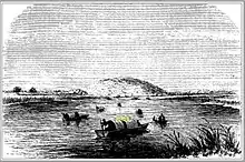 In the past, the area flooded by the Niger was more extensive than today. In years with high rainfall the floodwater would reach the western outskirts of Timbuktu itself.[1] The Koriomé canal from Daï to Kabara was dug by the emperor Soni Ali Ber when he captured Timbuktu in 1468. An extension known as the "Hippopotamus Canal" was later excavated from Kabara up to Timbuktu.[2] A small navigable waterway to the west of Timbuktu is shown on the maps published by Heinrich Barth in 1857 and Félix Dubois in 1896.[3][4]