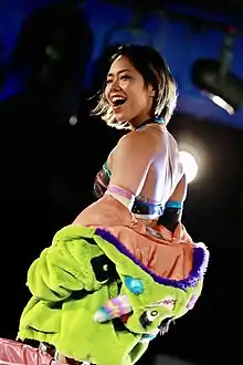 In January 2017, she partnered up with Sareee to challenge for the World Woman Pro Wrestling Diana Tag Team Championship, where they lost to Crysis (Chikayo Nagashima and Megumi Yabashita).[16] In June 2017, she revived Mission K4, this time with Akino as her partner, and the two won the OZ Academy Tag Team Championship, beating Hikaru Shida and Syuri at Voyager.[17][18] Whilst already holding the OZ Academy tag belts, she also won Wave's Tag Team Championship with Hiroe Nagahama in August.[19] In September, she defeated La Jarochita to win the CMLL-Reina International Junior Heavyweight Championship, making her a triple champion.[20] Her days with three belts would be short, as she lost the Wave Tag Team Championship to Rin Kadokura and Takumi Iroha on September 17.[21] Additionally, she and Akino dropped the OZ Academy Tag Team Championship to Mayumi Ozaki and Maya Yukihi in October.[22]