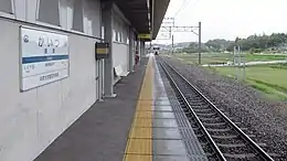 The station has one side platform built on an embankment. The station building has automated ticket machines, TOICA automated turnstiles and is staffed.