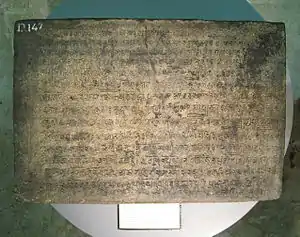The Kalasan inscription is an inscription dated 700 Saka (778 CE),[1]:88–89 discovered in Kalasan village, Sleman Regency, Yogyakarta, Indonesia. The inscription was written in Sanskrit with Pranagari script (Northern India). This is the first inscription discovered in Indonesia that mentioned the dynastic name of Sailendra as Sailendravamça.