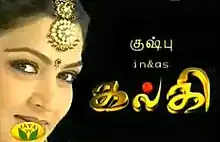 Kalki was an Indian Tamil-language soap opera that aired on Jaya TV. The show is produced by Avni Telemedia and also the story writer, creative head and producer by Khusbhu Sundar. This was directed K. Natraj. Tamil Film actress Kushboo Sundar acted with Abhishek, Shyam Ganesh, Pooja, Gandhimathi, Delhi Ganesh, Aravind Akash and Vivek Anand [1]
