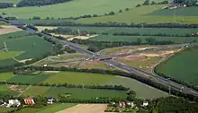 The Kamener Kreuz was formerly a full cloverleaf interchange near Dortmund in North Rhine-Westphalia Germany where the Autobahnen A1 and A2 meet. It lies between the towns of Kamen and Bergkamen in the west and the city of Hamm and the municipality Bönen in the east. The Kamener Kreuz, opened in 1937, was the second interchange between two Reichsautobahnen, the first one being the Schkeuditzer Kreuz. It is used by 160,000 vehicles per day.